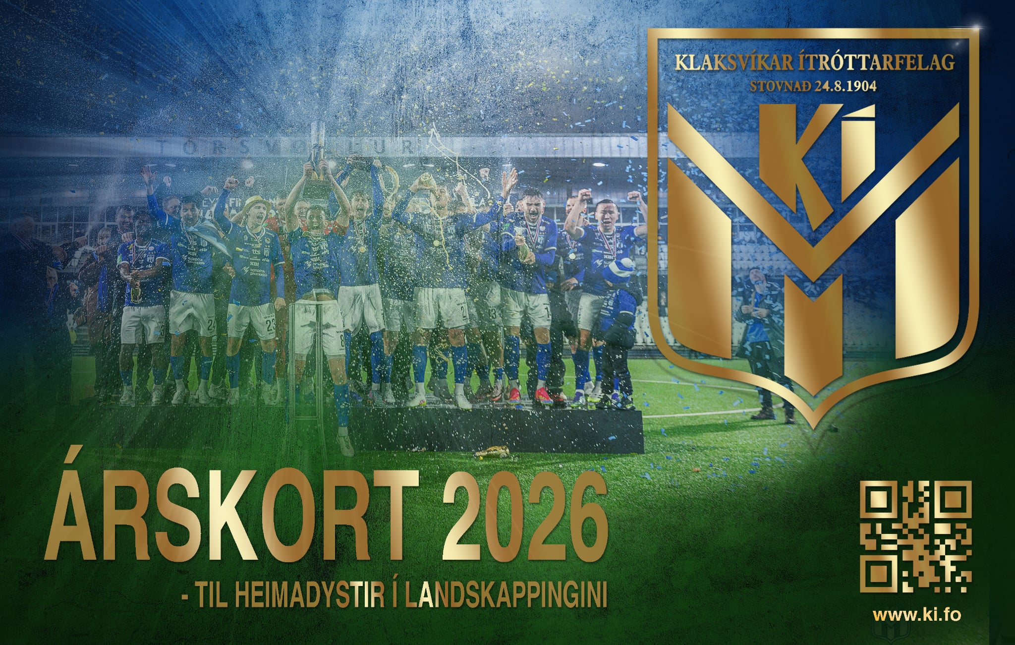 Árskort 2026 Keyp ársins jólagávu og spar góð 30% Árskorti gevur atgongd til allar heimadystirnar hjá KÍ í landskappingini 2026 Kostnaður: kr. 995,- Keyp árskorti á nethandlinum: ki.fo ella ring til Kaj Dam – 548643 – kajdam@ki.fo G.G. Árskortini kunnu avheintast í KÍ handlinum.